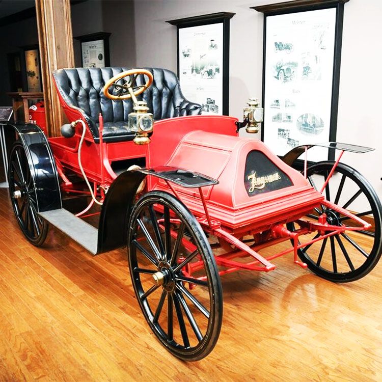 The Zimmerman was one of the more elegant motor buggies, its two-cylinder engine placed under a gracefully curved hood. The high-wheelers were very popular in the early years of the automobile industry. They found favor with rural customers who needed vehicles that could withstand the rough and rutted roads of the period.