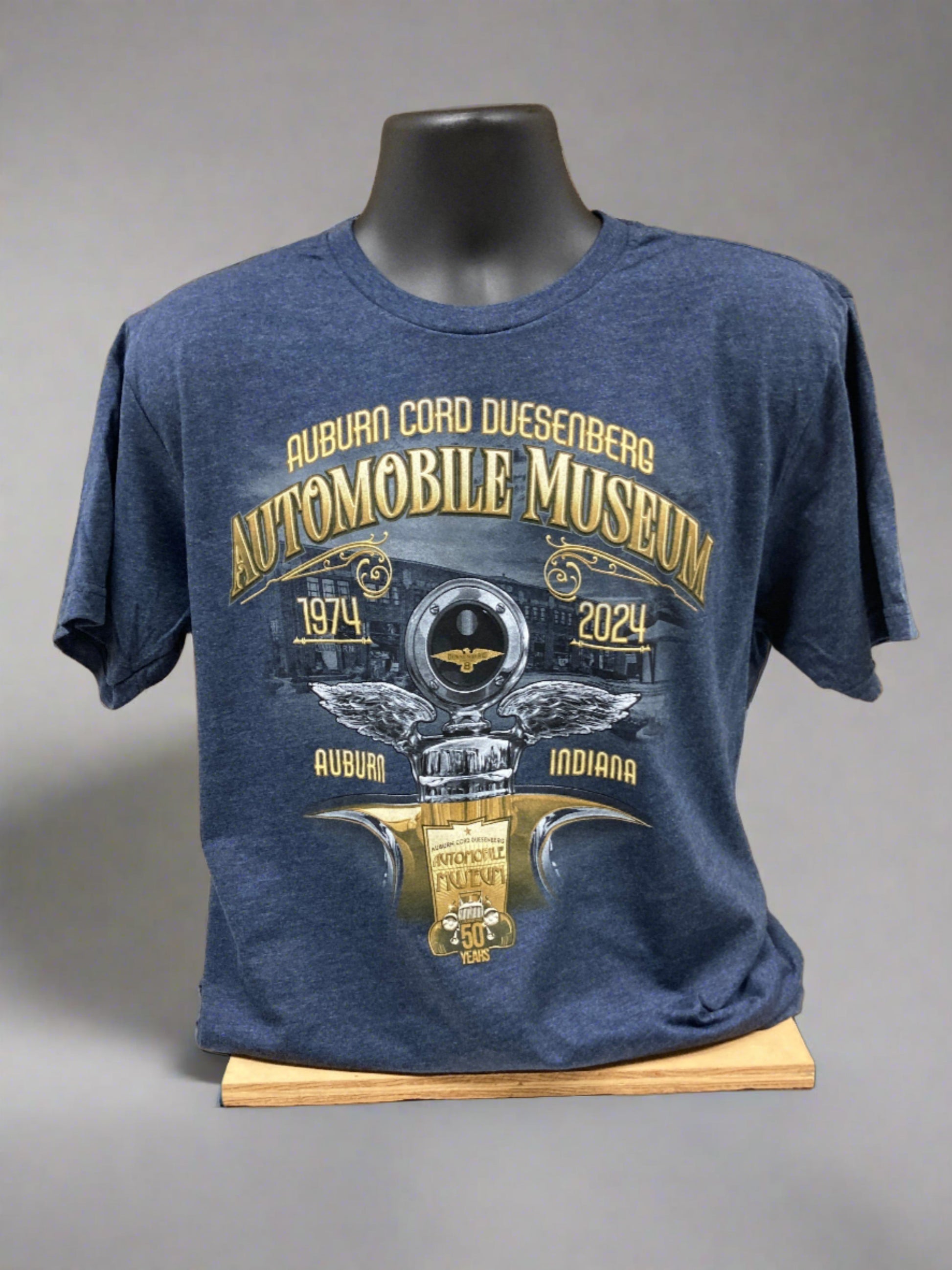 Don't miss your opportunity to proudly display your support for our cars and museum with this limited edition 50th anniversary shirt, available only in 2024!