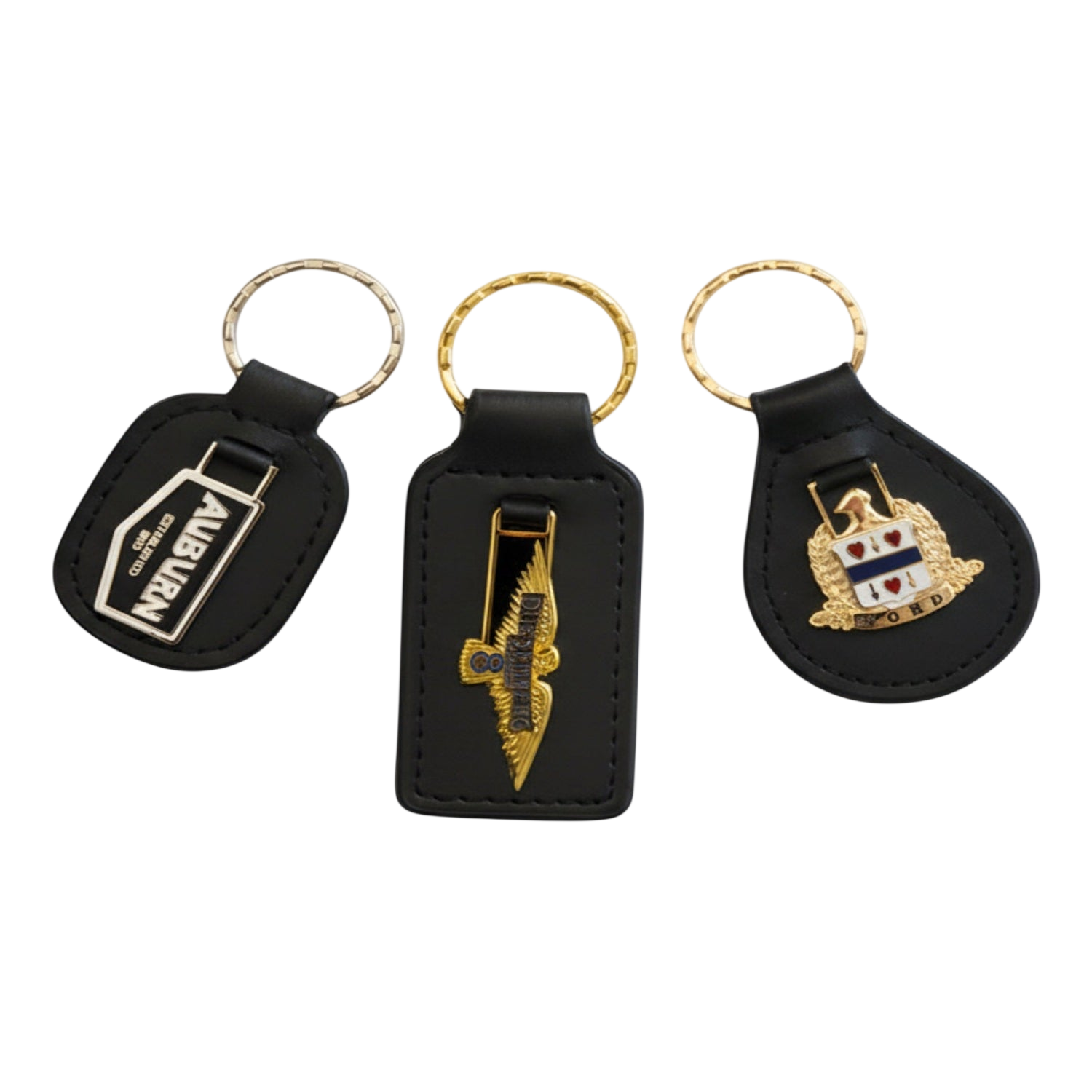 Take your pick from the Auburn Established 1900 pennant, the Cord Crest emblem, or the Duesenberg Straight-8 Eagle emblem, all expertly assembled onto a sleek key ring.