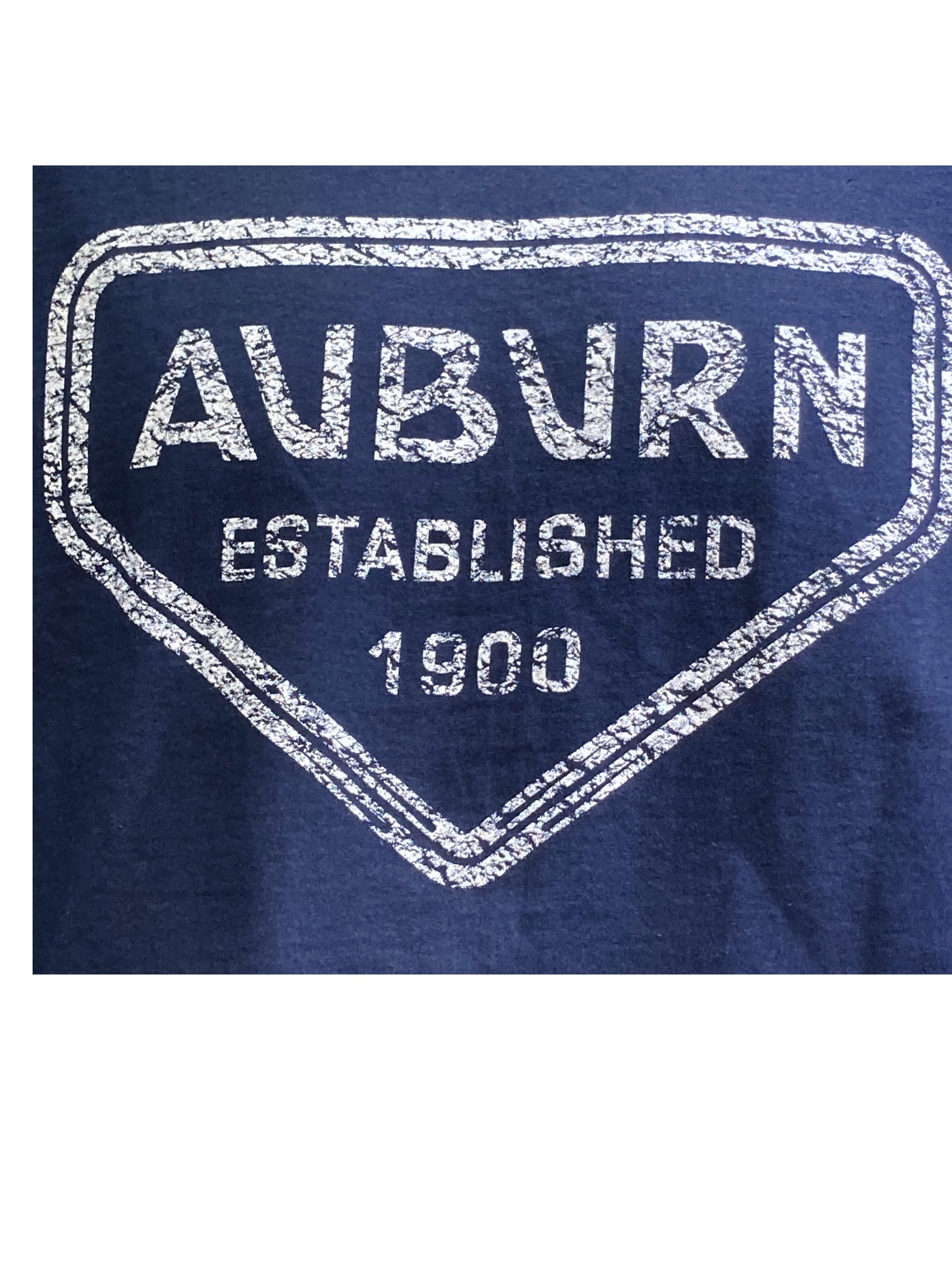This navy t-shirt displays the Auburn automobile logo center chest.